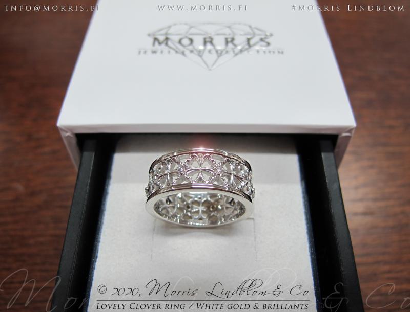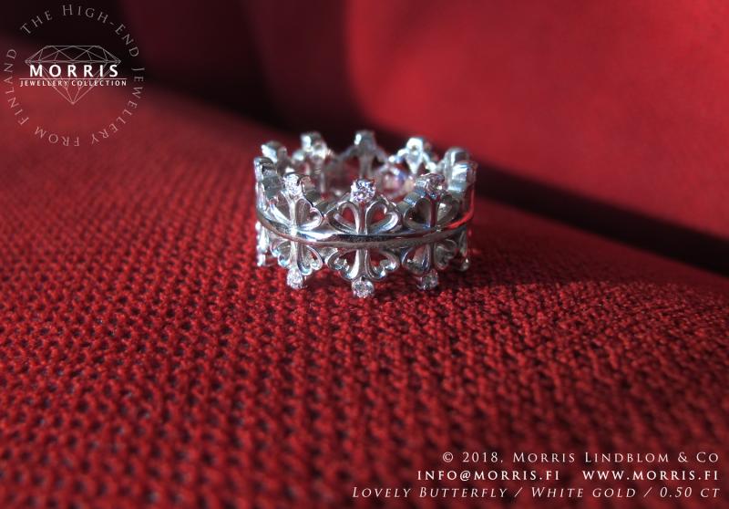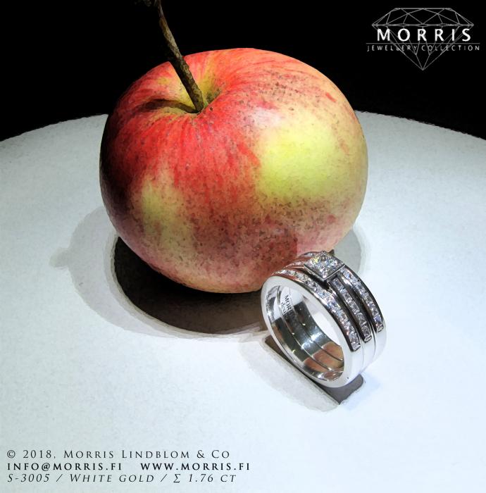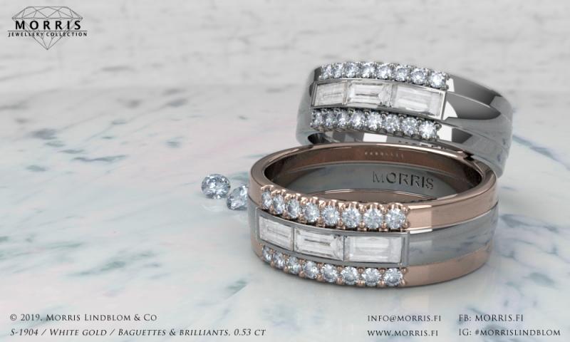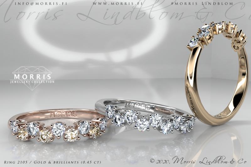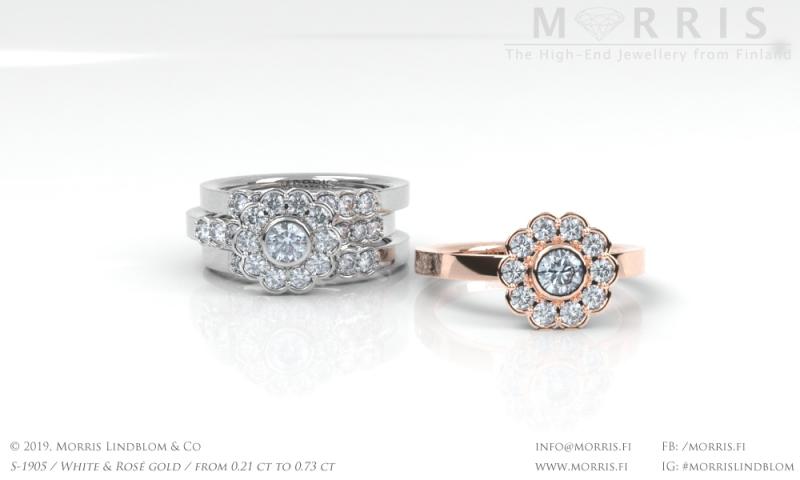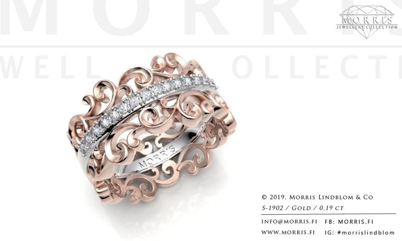 Timantit ja jalokivet: 15 x 0.0125 ct, yht. 0.19 ct; voidaan toteuttaa myös isommilla timanteilla